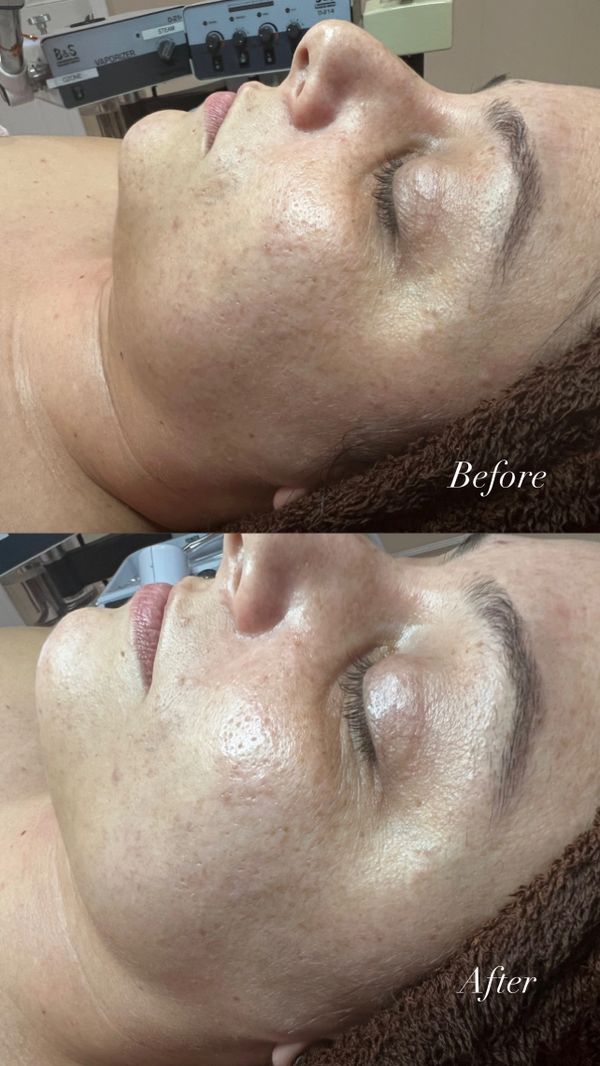 Microdermabrasion is a dermatological procedure that gently removes the top layer of skin. It is used to even out skin tones, fade acne scars, and brighten a dull complexion!